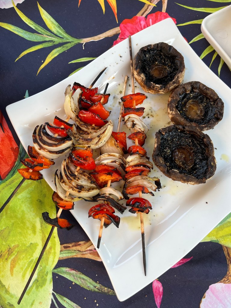 BBQ with burgers, roasted veg, roasted potato parcels and salad