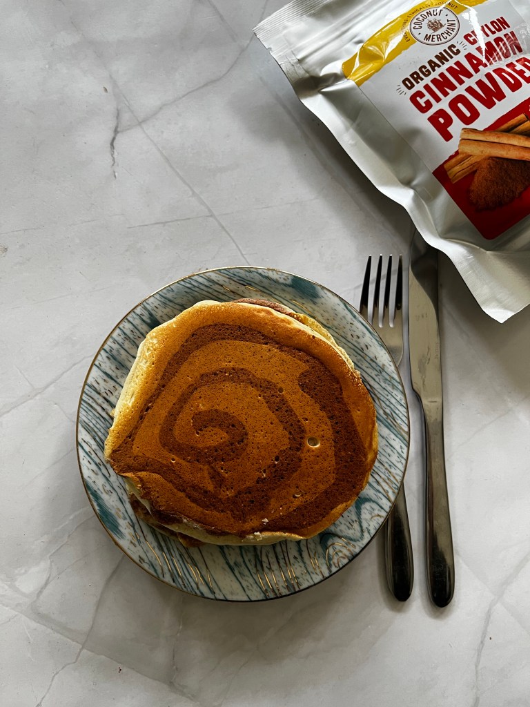 | lucylox February 12 | Cinnamon Swirl Pancakes, what a fantastic idea! Little S saw this on TikTok and I had to make my own version - you may think it's a bit of a gimmick but the cinnamon flavour really comes through and they really do taste just like a cinnamon bun, in pancake form! I've made the batter especially thick so get get a lovely fluffy pancake that holds the swirl - you want to have the look of a cinnamon bun after all. Plus the light fluffy texture really adds to the fun nature of these pancakes. This is not a sponsored post but the Coconut Merchant have sent me some of their products to use in my recipes. Having only recently come across this brand i'm really keen to champion them as their products are free-from as well as ethically sourced, and that's rare with coconut. In this recipe i've used some of the amazing Organic Ceylon Cinnamon Powder which gives an incredible warm spicy flavour. These might just be our choice this Pancake day. What kind of pancake are you going to choose? Cinnamon Swirl Egg-free Pancakes dairy-free, egg-free, nut-free, soya-free, sesame-free, vegetarian and vegan - 120 g plain flour (1 cup)